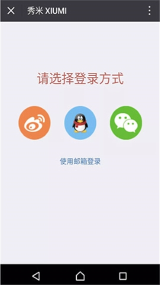 1、在本站打开软件,若您已有秀米账号,且此前未登录过手机版,将会显示登录页面,可通过微博/QQ/微信/邮箱进行登录。