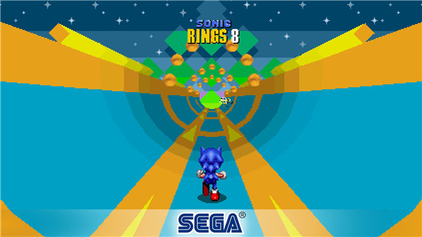 超级索尼克变身机制:收集全部翡翠后,角色可变身为金色形态,突破常规关卡限制,体验无敌冲刺快感。