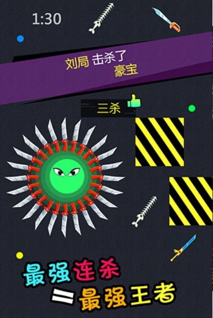 《刀剑英雄大作战》是一款主打休闲飞刀元素的小游戏,玩法设计得十分简单——玩家只需用手指点击屏幕,就能操控画面里的小球。游戏过程中,你得灵活躲避或防御其他小球的攻击,同时捡起地面上散落的各类武器;挑战时,优先选择地图上防御力较低的敌人发起对决,这样既能提高获胜概率,还能让自己在排行榜上的名次更靠前。 游戏看似操作简单,实则藏着需要极限操作的精彩竞技内容,一击致命的机制更是让操作顶尖的玩家能轻松制霸全场。你需要不断升级自身属性、追求能力极限,还得在魔性十足的对决中一步步进化;游戏遵循“大鱼吃小鱼”的基础规则,玩家可通过吞噬其他小球来成长,同时还要不停走位,尽量避开敌人周围环绕的武器。