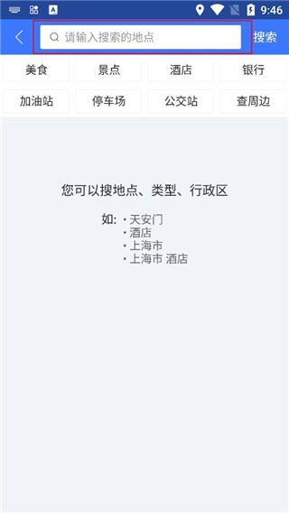 4.生活服务。用户可借助搜索功能查找周边的酒店、餐厅、加油站、医院、公交车站等各类生活服务设施。